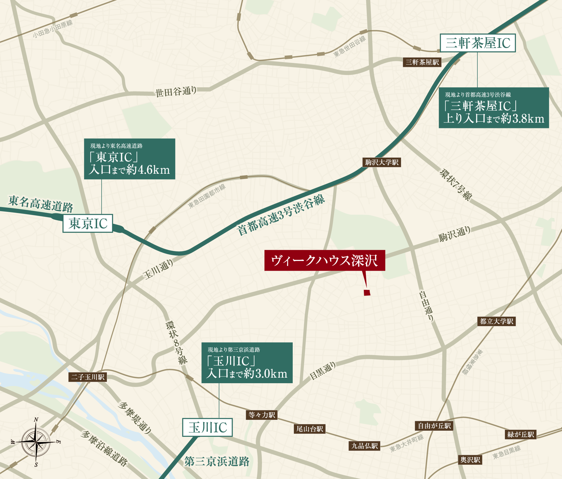 ◆ 首都高速3号渋谷線『三軒茶屋IC』上り入口まで約3.8㎞