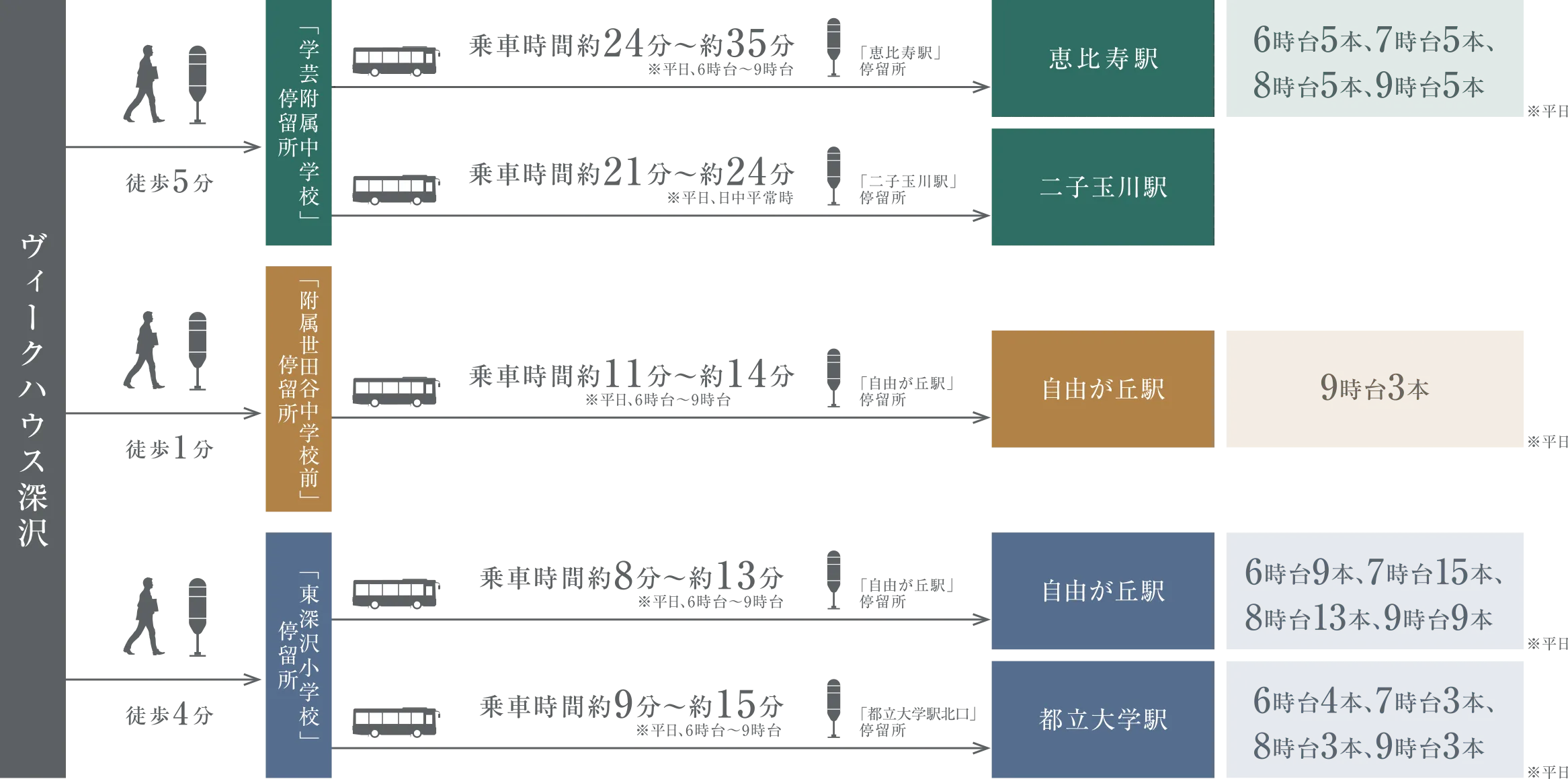 ※掲載のバス情報は『東急バス』公式サイト内より。(2025年10月現在)。道路事情により所用時間は変動する場合がございます。