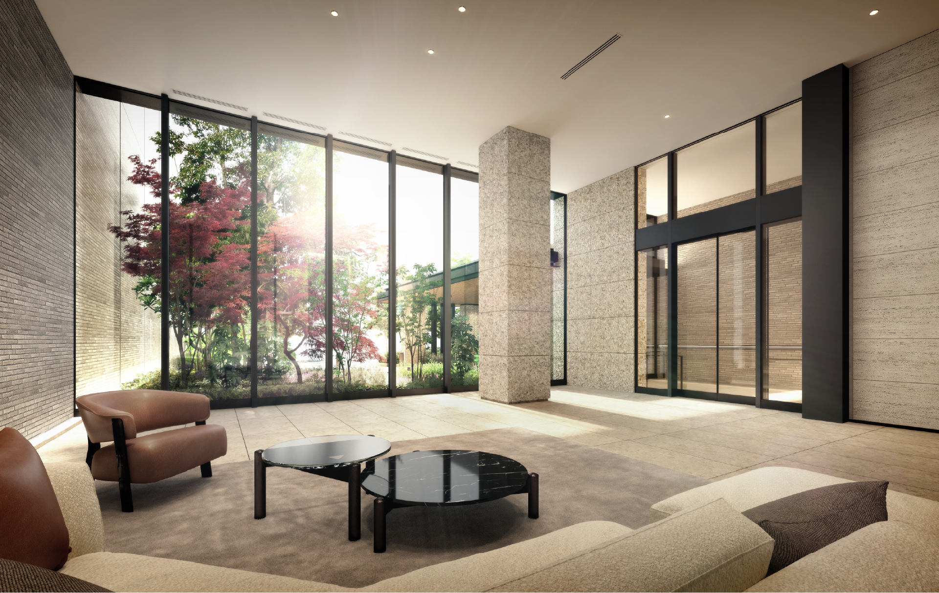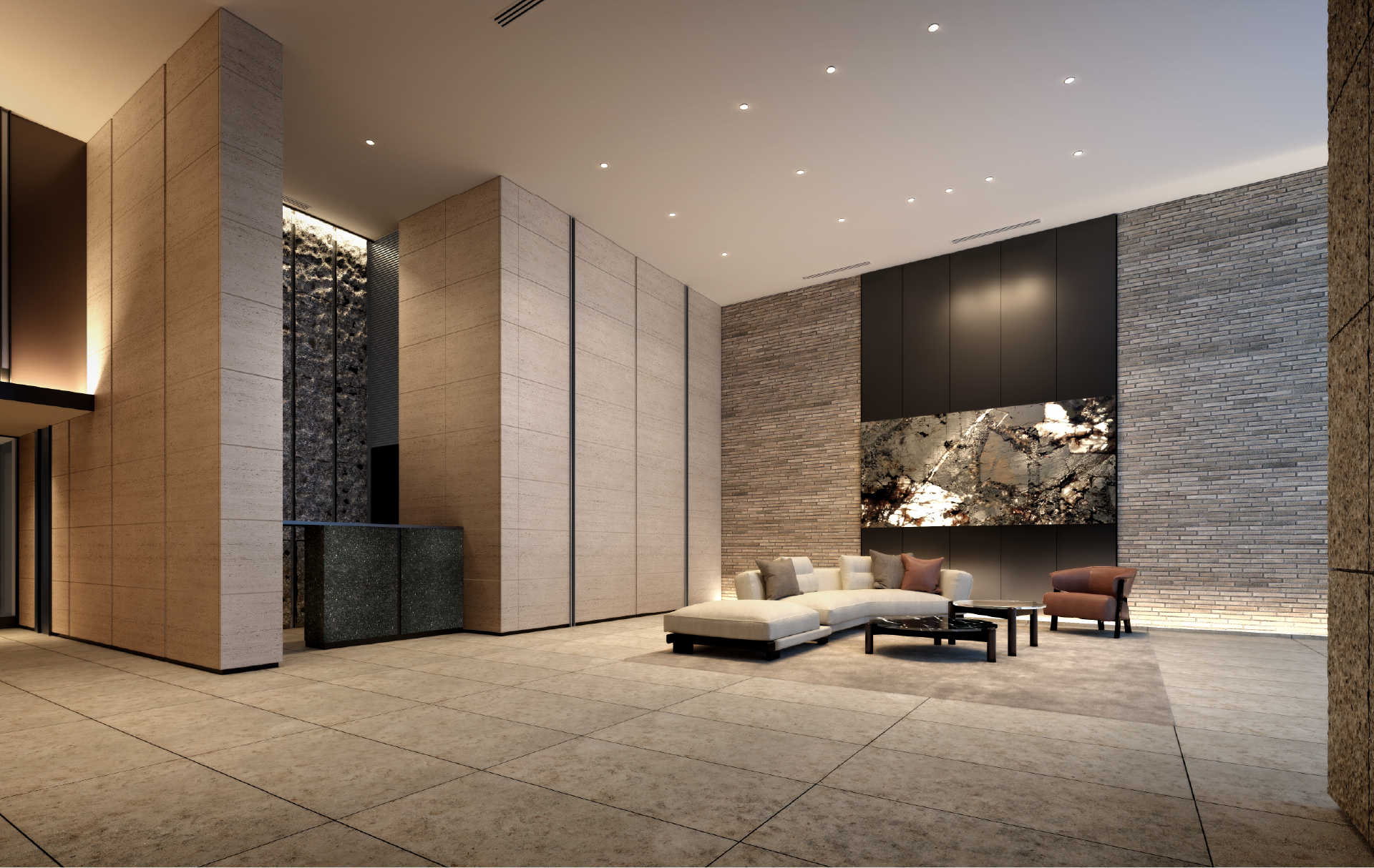 高級感のある大理石や御影石、玄武岩などの石材をエントランスホールを中心とした、共有部で採用。異なる表情の素材の組み合わせが洗練された空間を演出している。