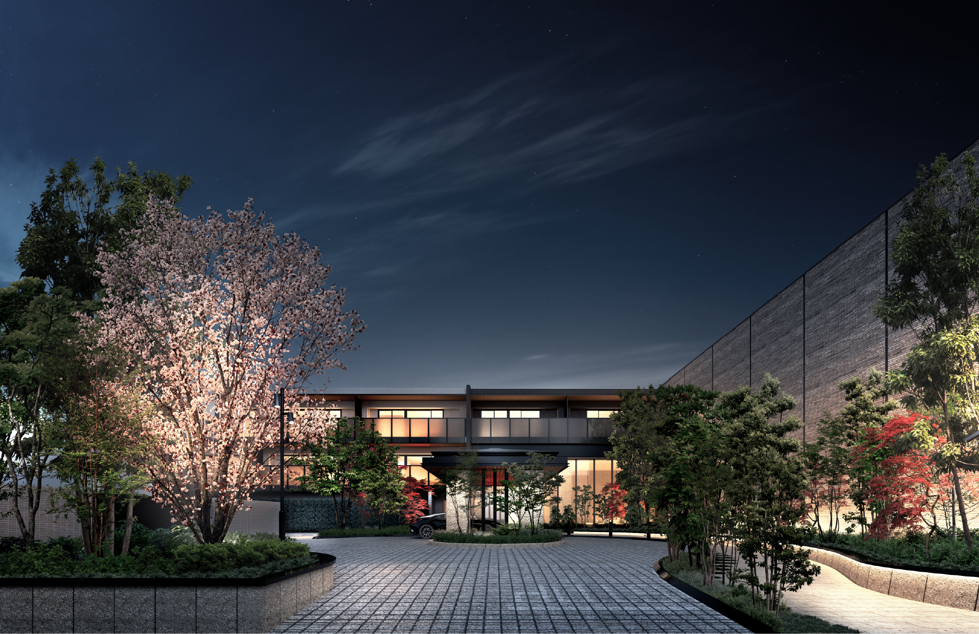足元を照らす照明が、奥行きのある風景を創出し、気品ある佇まいを感じさせている。