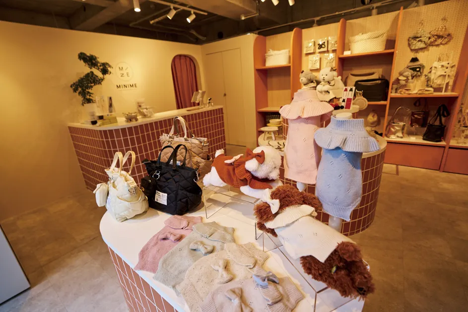 2025年オープンの人気ドッグアパレルブランドMINIME初のフラッグシップストア。可愛らしい店内で、ハーネスやお洋服といった定番人気アイテムから海外のセレクトまで取り扱っています。