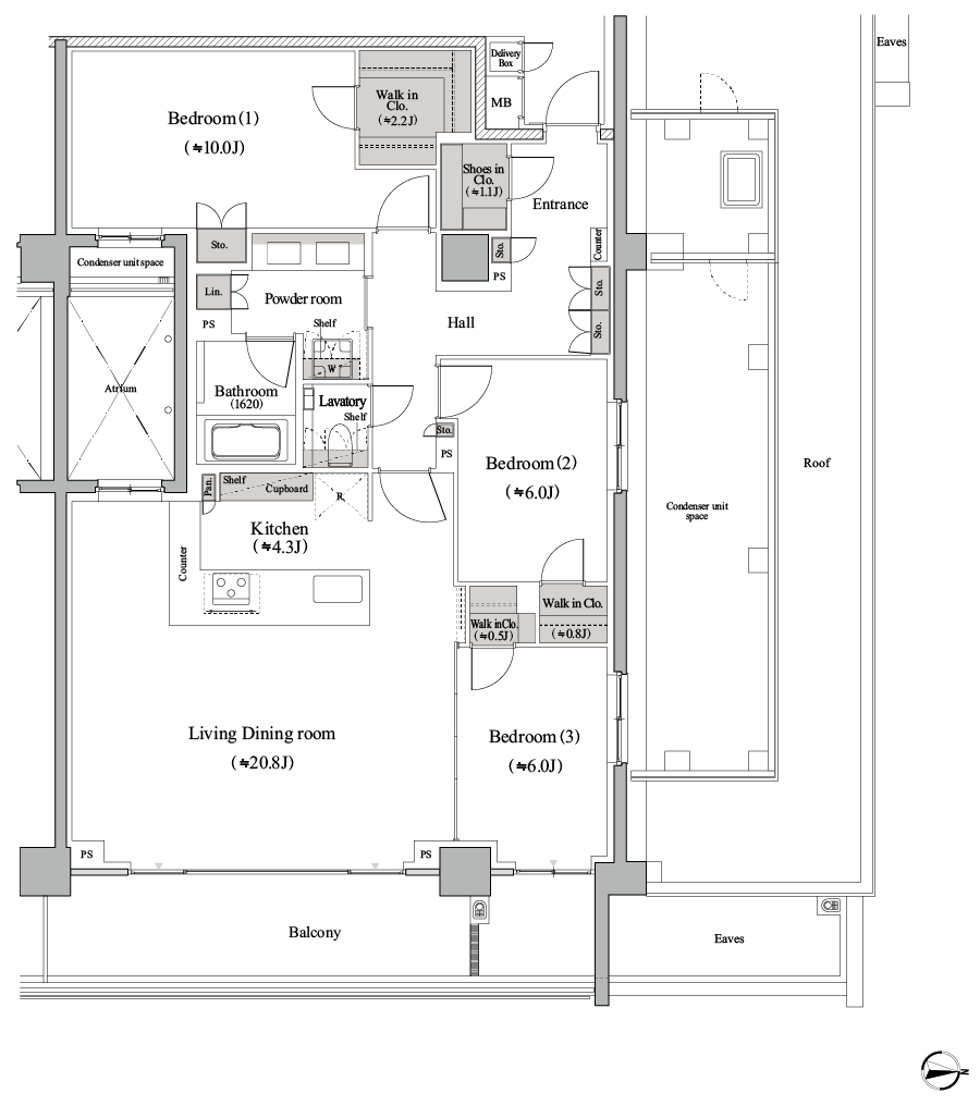 室外機置場(洋室(2)(3)側)/28.41㎡(約8.59㎡)